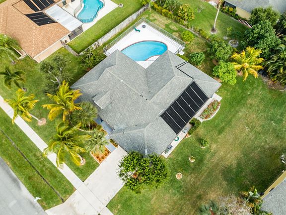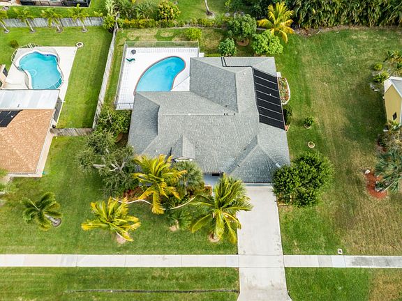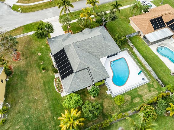 Move right into this Beautifully Landscaped, very well maintained 4 Bedroom Pool home in Eastwood of Wellington! Home is on a Cul-De-Sac & features a Split floor plan w/ full Hurricane protection. It is Generator Ready w/ a Transfer switch for easy generator hookup. The Cathedral ceilings unite the Open Kitchen & Oversized Family room. The Master Bedroom, Dining, Kitchen & Family rooms all have a view of the private fenced in yard w/ the Solar heated pool. Upgrades include stainless steel kitchen appliances including a brand new French door refrigerator, fully restored shower & master bath, unique ceiling treatments ,Crown Molding throughout the house, Accordion Hurricane Shutters on all openings, Hurricane Rated Garage door, pet screening on the patio, new energy saving variable speed pool pump w/ all new pool filtration equipment, new coping tile around the pool, upgraded pool lighting system, upgraded sprinkler system, mature fruit trees (citrus, avocado, coconut, mango), raised bed vegetable garden w/ rain barrel & dedicated sprinklers, Shelf Genie Pantry pull out shelves, convenient cabana style 2nd bath, recently painted exterior & much more! Home is walking distance to a Wellington top rated Elementary school & close proximity to Wellington Greens Mall, Equestrian facilities, Restaurants, Parks, Turnpike, Beaches and More. No HOA!