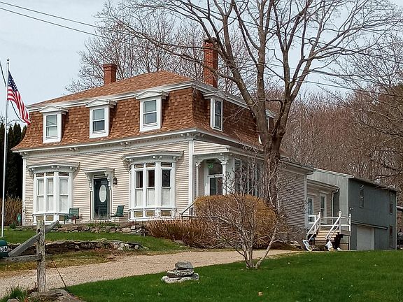 ROUND POND VILLAGE 1870 Mansard style home, set on half acre, with view of harbor across street. Beautiful perennial gardens. Full two story home, 10' ceilings on both floors, elegant proportions, beautiful trim & woodwork, original newel post & bannister.