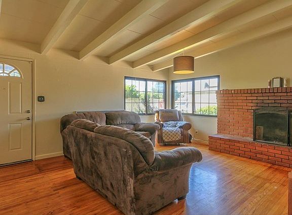Santa Lucia Village property which encompasses three bedrooms, two bathrooms, large living room with a brick fireplace which is a focal point in the house. As you enter into the property, you will find that the house has hardwood floors throughout, tile in the kitchen and bathrooms. The kitchen has tile backslash and stainless steel appliances. As you pass through the sliding doors in the kitchen, you will find a small patio on the side of the house and the backyard. The garage has been used as a living room or sometimes as a room. The property is close to a school and a park.