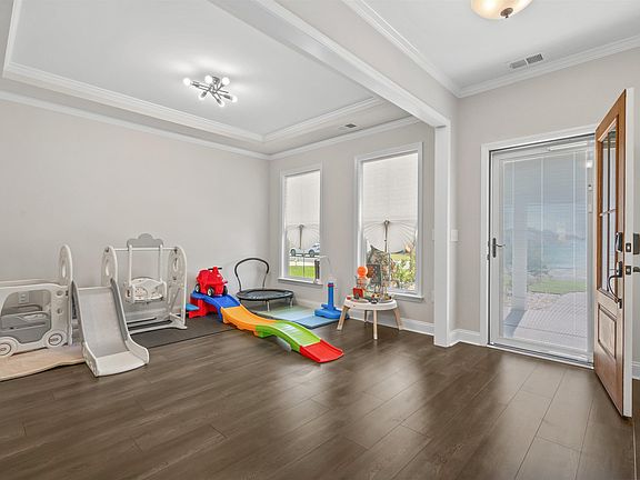 Welcome to this remarkable 4-bedroom, 3.5-bathroom home located in the highly desirable Berkshire Forest community in Carolina Forest! Boasting a spacious and thoughtfully designed layout, this home offers comfort, functionality, and elegant details throughout. As you arrive, you’ll be greeted by beautiful landscaping and a charming front porch, perfect for enjoying quiet mornings. Step inside to find a formal dining room with elegant tray ceilings to your right—currently used as a playroom—and a private office with a stylish glass door to your left. The heart of the home is the chef-inspired kitchen, fully equipped with stainless steel appliances, a work island, an expansive walk-in pantry, and abundant cabinet space—a true dream for any culinary enthusiast! The master suite is a serene retreat, featuring tray ceilings, a double-sink vanity, walk-in shower, garden tub, and a massive walk-in closet. Upstairs, you'll find a spacious loft-style living area, a second office/flex space, and three additional bedrooms. Step out onto the second-story balcony overlooking the front yard—a perfect spot to unwind. The yard includes a new irrigation system to make lawn care effortless. But the home is just the beginning—Berkshire Forest offers resort-style amenities including: multiple community pools, clubhouse & recreation center, tennis courts, playground, fitness center, and a scenic lake with walking trails for peaceful strolls and relaxation! This is more than just a home—it's a lifestyle. Don’t miss your chance to be part of this vibrant and welcoming community. Schedule your showing today!