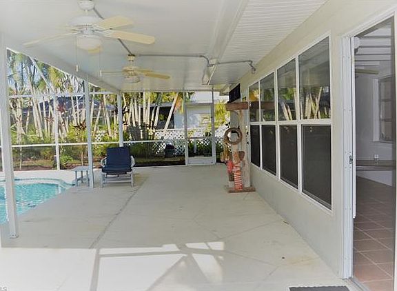 BANK APPROVED PRICE! Spacious older Yacht Club home with all the charm for its era and a lot of updates as well. Located with SOUTHERN exposure with a quick ride out to the river! Large pool area is built for entertaining with waterfall, built in bench and table (for drinks) and outdoor bar. Kitchen, dining, and family room all flow together nicely and there are amazing plantation shutters on the family room to let in light or close off for privacy. The master suite is a good size and master bath features a walk in shower with vintage tile and updated vanity. Secondary bathroom also has vintage tub/shower and an updated vanity. Two additional guest rooms complete the package. The garage is extra deep and there is also a storage/workshop area off the lanai. A great home with lots of potential for fun for its new owners!