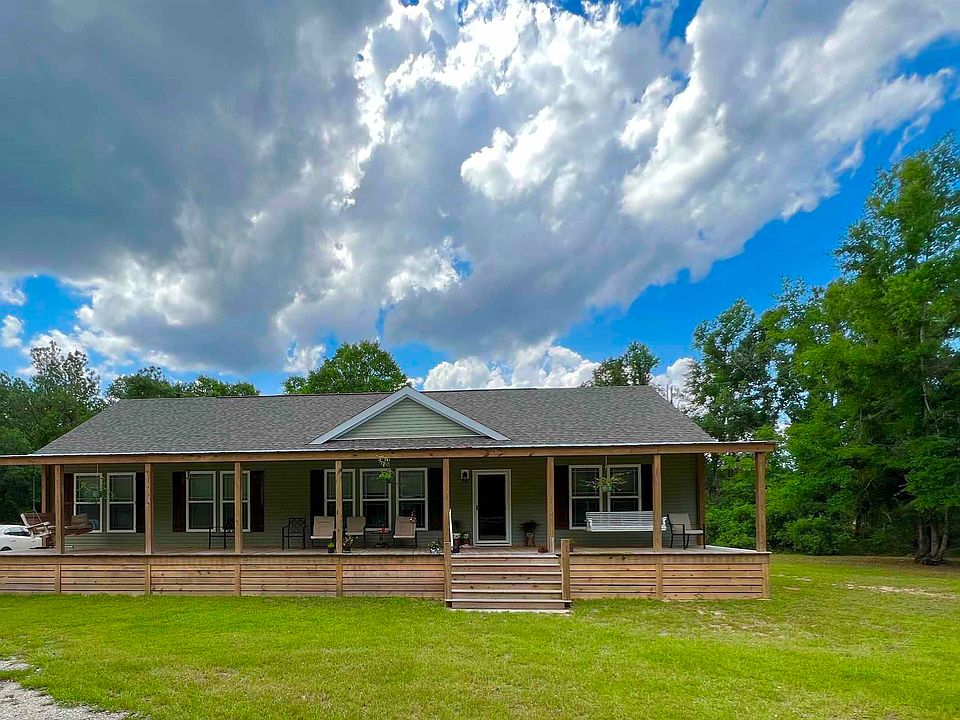 Welcome home to your private 20 acre Homestead located in Lillian Alabama, right on the edge of the Florida line. This serene, wooded & fenced acreage home offers 3 bedrooms, 2 bath, spacious open concept living & kitchen w/ 9 foot ceilings throughout, family style extra large island, SS appliances, dining room with rear yard access and ample space to entertain year round, including a 64’ long front porch. The primary bedroom has a ensuite equipped with a spacious shower & garden tub, 2 sinks, 2 separate closets and a separate toilet room. The Property comes equipped with a 16 KW generac- auto ready for any power outage, both a tankless gas and electric water heater, a deep water well, underground utilities, a go-kart course, a Deerstand and even a Quanza hut. Plus an oversized 30’ x 60’ fully equipped, metal building shop w/ a side boat storage pad along with an RV hook up w/ power & sanitation. The bldg has 2 large garage doors, wired electric, a compressor, a mezzanine storage space, 2 additional storage rooms and bathroom facility. The property offers 475 feet of road frontage, 11 of the acres are fully wooded and the entire perimeter is fenced. The surrounding properties offers extended privacy. There is a rented mobile home on the premises currently with a lease till January 2023 however it is a flexible situation. This property is a must see to fully appreciate the natural beauty & wildlife (deer & turkey). A wonderful opportunity, minutes from Pensacola & Alabama’s recreation.