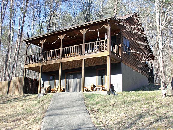 Newer and certainly well-maintained cabin in Hocking Hills, full of woodsy charm outside & in. Upscale log & other furniture and furnishings included..just close and enjoy or perhaps use as an rental investment. Lots of value-added amenities, including extended paved driveway with drive-to-porch convenience plus extra parking & easy-turnaround. Covered porches front and back, along with lower walkout patio. Newer fenced side yard for pets and/or young'uns. Excellent privacy factor, with full baths on main & lower levels. Wood doors, floors & ceilings, impressive beams & timbers. Stone cozy corner fireplace w/vented gas logs, porch swings and rockers, hot tub, lighted closets, upscale fixtures. Stainless kitchen appliances, plus washer & dryer. Lower rec/media space, spacious bedroom loft.