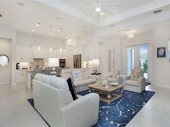 Welcome to a home that effortlessly blends timeless coastal charm with modern luxury. From the moment you step inside, you'll be captivated by the custom details that make this residence one of a kind. The spacious open floor plan is adorned with custom lighting pendants, quartz countertops, and beautifully designed coastal features that create a light and airy ambiance. Expansive sliders, enhanced by Hunter Douglas custom treatments, invite natural light while seamlessly connecting indoor and outdoor living. The heart of the home extends to the oversized lanai, where you’ll find a fully loaded outdoor kitchen, ideal for entertaining. Enjoy the serenity of the saltwater pool and spa, complete with custom water fountains. Designed for style and safety, this home features Storm Smart electric roll-down screens, impact glass throughout and a Vitex Security System for peace of mind. Built-in speakers enhance the ambiance, allowing you to enjoy music throughout the home and outdoor spaces. With four bedrooms and three full baths, this home provides ample space for family and guests. The three-car garage offers plenty of storage and functionality. Every detail has been thoughtfully designed for comfort and elegance. Set in a vibrant community with exceptional amenities, residents enjoy a guarded entrance, 22 lakes, a one-mile rowing lane, boat ramp, island club, fitness center, bocce ball courts, beach volleyball, tiki bar and café with food and beverage service, resort-style pool with lap lanes, fire pit, private Kon Tiki island, stand-up paddleboards, kayaks, bicycles, tennis and pickleball courts, two dog parks and miles of recreational/biking paths. There’s even a basketball court and a kid’s cove with a tot lot. Ideally between 5th Avenue and Marco Island, this location provides effortless access to shopping, dining and the beach.
