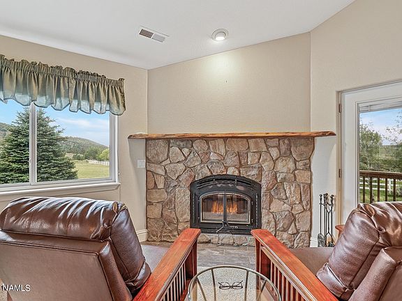 Beautiful updated home that you can walk, or ride out your back yard, into miles of National forest! Spacious single level open floor plan with vaulted ceilings and central air conditioning. Living room also features a wood burning fireplace. Primary bedroom has a warm and inviting gas fireplace, remodeled walk-in closet, separate tub & shower, and dual sinks. Split bedroom floor plan. There is a family room in the back of home that looks out into the forest and your fenced in back yard. Included in the purchase are a new 2021 LG black stainless steel appliance package of refrigerator, oven, dishwasher and microwave. Garage door is new for 2021. Pella Impervia dual pane foam filled fiberglass windows throughout the home installed in 2018. This home is part of the APS solar project