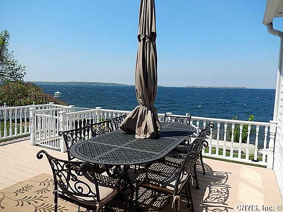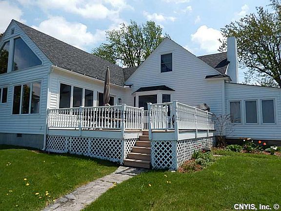 Spectacular year round home with amazing vistas from every window! This 5 bedroom, 2.5 bath beauty will have you charmed and dreaming of long relaxing summers on Lake Ontario. A nicely appointed kitchen, spacious open living and dining areas are perfect for entertaining your delighted guests. Other attributes include a beautiful fireplace, gorgeous cathedral ceiling, and hardwood floors. Additional building lot across the road has endless options. Lovely sun deck, private fenced yard, waterfront patio, deep water dock and an electric boat lift make this stunning home complete! Call today!!