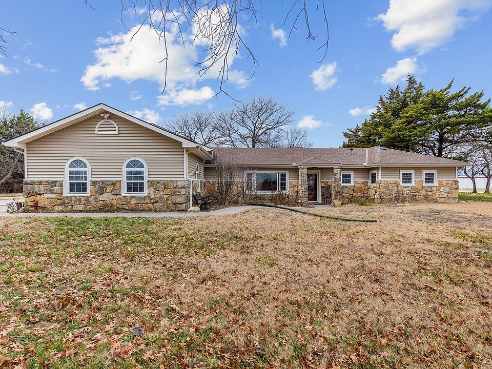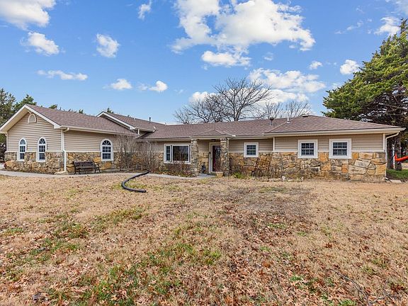 Great location for this home that sits on just under 2 acres and treed around. The seller loved the country feel but quick accessibility to Derby or Rose Hill and located right off the paved 143rd Rd. The home is being sold "as is" and priced accordingly. The home has a wonderful remodeled kitchen with granite countertops, stainless appliances and wood tiled floors. There is a main level bedroom and main level bath is gutted but not finished (this would make it a 3 bath home). Seller has purchased many of the supplies for this bath and will leave with home for next owner. The upper level has 2 full bedrooms and even an additional 3rd room that the kids used as a separate playroom, and full bath to share. The lower level is a partial basement with office, additional bath, and large rec room. The outside does have a large shop with concrete floors and electric, window AC, and pellet stove. Middle shed has concrete floors and electric no heat and air. Last building has 1/2 dirt and 1/2 concrete floors no electric. This home has potential for the right buyer and priced at an incredible price for the space and land.