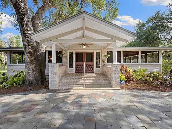 Don't miss this once-in-a-lifetime opportunity! Located at the very end of River Road, this Old Florida style home is perfectly tucked into a mature oak hammock. No detail was overlooked when this home was built - custom millwork, high-end finishes, and complete dedication to quality can be found throughout. Relax on the wrap-around screened porch while listening to the wind blow through the Spanish Moss or search for fossils in the beautiful Orange River; this property truly has it all! There is plenty of room for your toys in the three-car detached carport, the two-story shop, and the oversized pole barn with RV water and electric! The second detached dwelling includes a recently renovated tranquil beach guest suite with a full kitchen, bedroom, and full bath. A separate outdoor entrance leads to the second-floor guest quarters with custom hardwood floors, spacious bathroom, large storage area, and panoramic views of the property. This versatile, fully gated and fenced property provides the private rural feel of Old Florida while being conveniently located to shopping, dining, and entertainment. Main house is 2 bed/1 bath, 1,270 Square Feet. Guest house is 2 bed/2 bath, 1,240 SF.