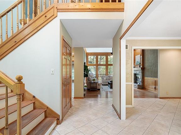 Live the good life in coveted Lakeview Estates. This stately 1.5 story home is a true gem, offering 6 bedrooms (5th & 6th non-conforming bedrooms in the basement) & 4.1 baths in a spacious Don Julian on a prime treed walk-out lot. Main level features beautiful hardwoods and woodwork, office with French doors, soaring ceilings in the Great Room with stone fireplace. The spacious kitchen boasts painted cabinets, a pantry, gas range, and granite countertops, and seamlessly flows into the Hearth Room with its cozy fireplace. Large Dining Room for family dinners and entertaining. The Primary Suite is a true retreat, complete with a fireplace, large walk-in closet, double vanity with granite tops, a jetted tub, and a luxe walk-in tiled shower. Upstairs, you'll find three additional generously sized bedrooms with ample closet space and two full bathrooms. The finished basement is a haven for relaxation and entertainment, featuring the 5th and 6th non-conforming bedrooms, a huge recreation room, and convenient walk-out access to the backyard. Whether you're hosting gatherings or enjoying quiet evenings with loved ones, this space offers endless possibilities. Outside, the large deck and patio beckon you to embrace the outdoors. Take advantage of the great yard or venture to the lake for a tranquil retreat. Lakeview Estates offers resort-style living with access to a pool, tennis court, pickleball play area, beach, dock, and more. Fantastic schools and perfect location.