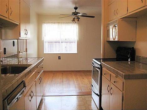 3 Bedroom 2 Bath Hardwood Floors Throughout Kitchen Features Tile Counters, Electric Stove, Microwave and Dishwasher Dining Area Fireplace in Living Room Slider Leading to Backyard Ceiling Fans in Dining Area and Bedrooms Central Heat Fenced Back Yard Tenant Pays Utilities Laundry Hook-Ups in Garage (electric dryer) Attached 2 Car Garage with Interior Access Ready Now One Year Lease Preferred Sorry, No Smokers, Pets or Housing Vouchers