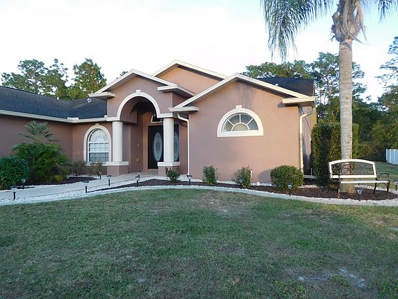 This is Florida living at it's best. Come and relax in your 3 bedroom, 2 bath, solar heated pool home located in a private subdivision with no HOA fees. Kitchen offers granite counter tops and stainless steel appliances, freshly painted through out, brand new wood like tile throughout house, central vacuum system, hot tub, shed, and beautifully landscaped with curb along. Home sits on .50 acre fully fenced in with 6ft privacy vinyl fence.