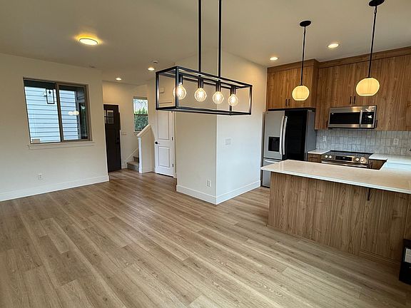 Be the first to live in this beautifully built 3-bedroom, 1 full bath and half bath home, completed in 2024 and located in a thoughtfully designed community in the heart of Happy Valley. With high-end finishes, an open layout, and large windows throughout, this home offers the perfect combination of style, comfort, and convenience. Interior Features: Expansive windows throughout for abundant natural light High ceilings for a bright, airy feel Luxury vinyl plank flooring on the main level Quartz countertops and modern cabinetry Brand new stainless steel appliances Stylish lighting throughout Private garage included Community Features: Professionally maintained landscaping Spacious shared courtyard with neighbors Pet-friendly (with approval) Location Highlights: Enjoy easy access to local amenities, parks, and top-rated schools, all within minutes of your front door. Schools: Happy Valley Elementary Rock Creek Middle School Clackamas High School Nearby Parks & Recreation: Happy Valley Park with sports courts, splash pad, and walking trails Scouters Mountain Nature Park with hiking trails and scenic views Mount Talbert Nature Park for peaceful nature walks Convenient Shopping & Dining: Fred Meyer, New Seasons Market, Target, and Clackamas Town Center nearby Local dining options include The Local Cow, Biscuits Cafe, MOD Pizza, and the Happy Valley Station food cart pod Additional Details: This unit does not have a garage. It only has a storage unit and two parking spaces. 3 bedrooms | 1.5 bathrooms Water sewer, garbage is paid for by the owner and reimbursed by the tenant in the amount of $100 per month utility reimbursement fee, not included in the rent rate listed here. Landscaping services included in rent Now accepting applications for immediate move-in. Don't miss your chance to enjoy a brand-new home in one of Happy Valley's most welcoming and walkable neighborhoods.