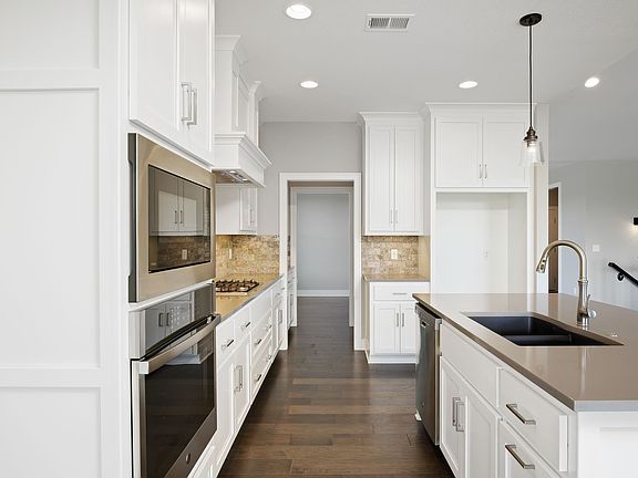 This reverse 1.5 story floorplan offers 2 bedrooms on the main level with a finished lower level recreation room, full bath and 2 additional bedrooms. Hard to find bonus flex space on the main level that is suitable for formal dining, 2nd living area or home office! Beautiful customized features throughout the home include quartz countertops in the kitchen and master bath, natural site-finished hardwood flooring, cathedral ceilings and deluxe zero-entry tiled shower in the master bath. The home's kitchen includes white custom cabinetry with soft close drawers, a large island, built-in stainless steel appliances & hood, upgraded dishwasher, gas cooktop and a butler's pantry off the kitchen for an extra prep area and storage! This home is situated on one of the few remaining walkout lots in Huntford. Walkout onto a covered deck and lower patio with views of mature trees nearby.