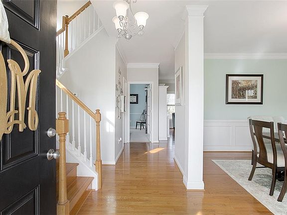 Elegantly Updated! Recently painted with a neutral pallet inside, this one has everything you're looking for. Open main living area features gas fireplace and plenty of light; gorgeous kitchen with marble countertops, custom tile backsplash, and newer stainless appliances (double oven is very convenient!); sunny morning room with vaulted ceiling and beautiful arched window. The formal dining room delights with wainscoting & crown molding, and in a quiet corner, a first-floor home office with French door. Unique details bring lots of charm & character: hardwood turned staircase, decorative square windows, built-in window seat. All bedrooms upstairs easily fit a queen bed, and the spacious master offers a sitting area. The baths have quartz countertops, including master bath with corner tub and separate shower. Walk up to the 3rd floor to 455 sq. ft. of space available to finish in the future! Fenced backyard with huge freshly-stained deck. Charter Colony living offers a gorgeous pool complex, play areas, lighted sports courts, award-winning schools, and a convenient location that's 5 minutes to everything