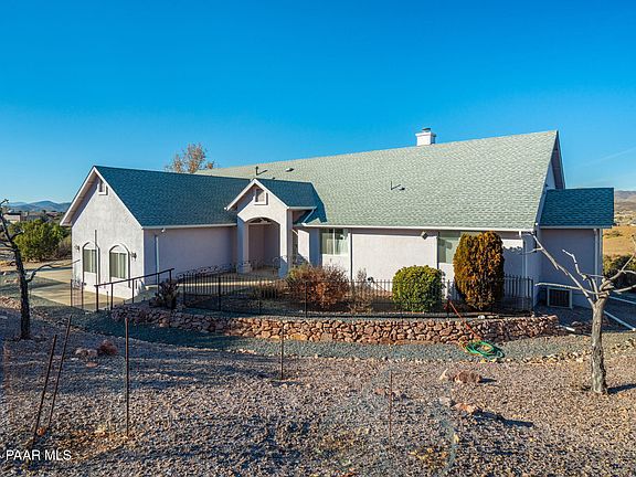 Wonderful custom built home nestled in the Foothills in Meadow Ranch in Dewey. The home features a 4 car garage that is attached. The home has vaulted ceilings & an open great room/kitchen dining area. There is also a gas log fireplace that has never been used. The home features 3 bedrooms, & 2 baths in a split arrangement. The great room features a lot of windows overlooking the enclosed AZ room & overlooking the Bradshaw Mountains & surrounding valley. The home has forced air. This is a one owner property that is location on 2.28 acres and a must see!