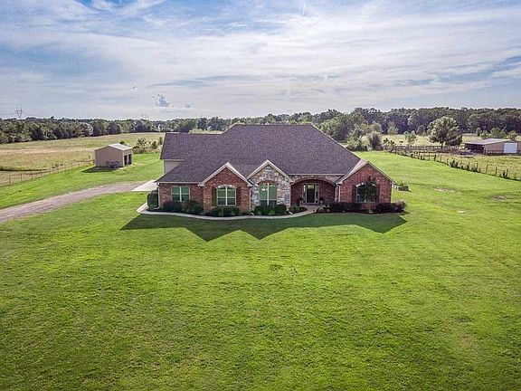 Custom Built by Rucker Fine Homes on 7.5 acres w/pond. 42'x27' 3-car garage w/FEMA certified safe room. 4 BR 3 BA split plan all on 1st floor. Only bonus room is upstairs w/separate H/A. Cooks kitchen has dbl convection, microwave, 5 burner gas cooktop, pot filler, big pantry, island, farm sink, spice cab. & more opens into spacious LR. Mud room w/built in storage, lg laundry w/sink & room for 2 refrig/freezers. Master BR w/bonus room for office, exercise, etc. NICE 29x10 covered patio w/brick gas grill.