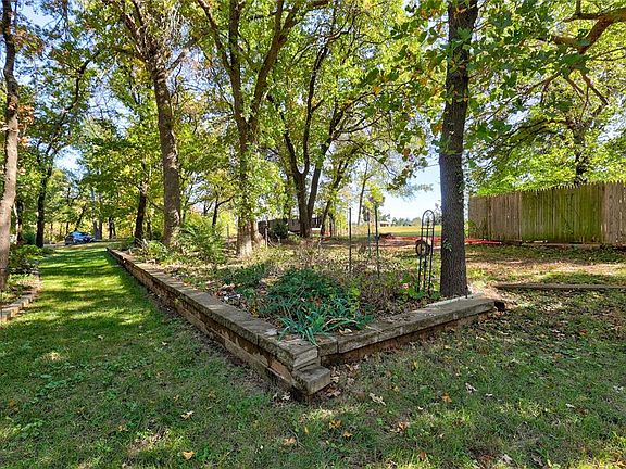 Enjoy this one and half story home located on a private one acre wooded lot which backs up to a creek. The home features a primary bedroom downstairs with a study connected by a bath. The study could be used as a separate downstairs bedroom. There is also a second primary bedroom upstairs with two closets, one which is a walk-in, along with two secondary bedrooms upstairs. The kitchen has lots of storage and a corner sink with a beautiful view of the backyard. Home has a private well and septic system. Property is in Logan County and in Edmond school district.
