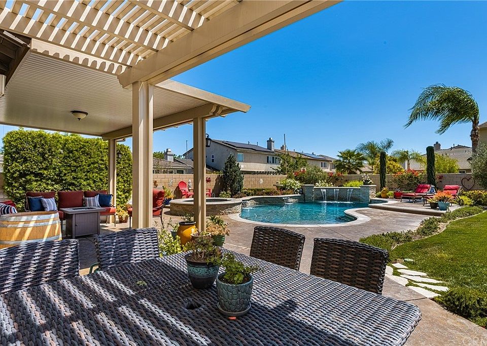 Great Property With Beautiful Curb Appeal and Nice Front Porch, Formal Living Room With Cathedral Ceilings, Separate Formal Dining Room, Approximately 3,179 Square Feet Of Gracious Living Space, Large Remodeled Kitchen With Granite Counter Tops, Breakfast Nook & Breakfast Counter, and Huge Pantry Closet, Family Room With Gas Burning Fireplace, 4 Bedrooms, Loft With Built-In Desk & Cabinets, and 2 Full Bathrooms (Upstairs, Den/Office and 1 Full Bath (Downstairs, Conveniently Located Main Floor Laundry Room With Utility Sink, Master Suite With Dual Walk-In Closet, separate tub & Standing Shower, and Double Sinks, 3 Car Attached Garage, Gorgeous Backyard Has a Sparkeling Salt Water Pool With Waterfall & Jetted Spa, Covered Patio, And Plenty Of Space For Entertainment, All Fenced In with Block walls, Additional Features Include: Built-In Pest Control System, Double Insulated Home & Garage, Extra Storage Over The Garage, Oversized Linen Closet, New HVAC System With 5" HEPA Filter, New Air Ducting, New 5 Way Air Vents In Master, New Toilets Throughout, New Rain Gutters, Ceiling Fans, Dimmer Switches, All In One Microwave/Oven Convection Speed Cooker Plus Regular Convection Oven & Chef's Le Buener Oven Range With 6 Burners, Commercial Grade Sprinkler System & Outdoor Rear Lighting, Under Counter Kitchen Lighting, Extra Deep Kitchen Sink, Upgraded Carpeting, Tile, and Wood Floorings Throughout, Fully Paid Solar System, Nest Thermostats (Upstairs & Downstairs, Ring System, Dual heating and cooling systems, Beautiful Wood Shutters, Built-In Speakers in Formal Living Room, Family Room, and Backyard, Approximately 8,712 Square Foot Lot, Built In 2006