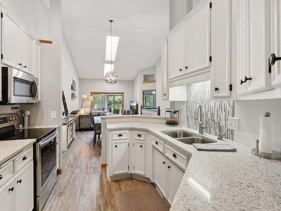 HURRY to see this STUNNING and GORGEOUS, updated, light-airy, one-level/main-level living Townhome -- with high-quality build finishes!!! Quartz countertops, SS appliances, BEAUTIFUL White Kitchen, Vaulted ceilings with light pouring in, care-free floors, freshly painted throughout, open floorplan -- perfect for entertaining -- and escape to the quiet sunroom to enjoy some peace. Lovely primary bedroom with large closet and updated ensuite bathroom. 2nd bedroom on main floor is used as an office. Head downstairs and unwind for the day -- wet bar in family room. PLENTY of room to store all of your extras in unfinished storage room!! Close to everything!!!