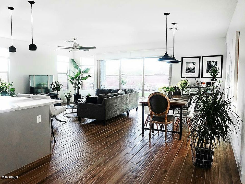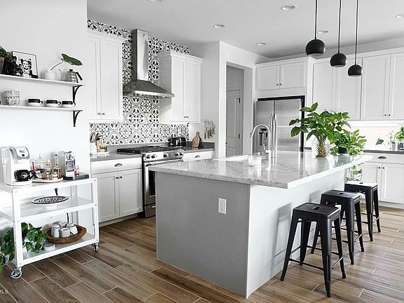 Simply STUNNING single level 2016 Build, 3 bedroom + den, 2.5 bath home in the heart of Marley Park community! Every detail of the home has been meticulously planned! Corner lot next to green belt for extra privacy. Great wood look porcelain tile flooring throughout home (no carpet), neutral modern palette with open layout, tons of natural light with multi-slider patio door. Gourmet kitchen boasts custom Carrara marble island with Quartz counters, two tone cabinets and gorgeous backsplash up to ceiling. Master ensuite features double sinks, vanity and large walk in closet. Backyard is a true paradise with gorgeous garden, upgraded irrigation system, covered patio and seating area. Coveted community has tons of amenities including 2 POOLs and tons of parks. Don't miss it!