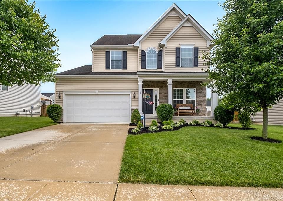 Fabulous Florence model in Waterford Landing! With a charming front porch and stone accents, it exudes curb appeal! Inside, a flex room can be used for working, socializing, or dining. The spacious family room opens to the kitchen with bar seating, stainless appliances, 42" cabinets, stone backsplash, and pantry! Enjoy meals in the sunny morning room with access to the large deck. Upstairs, a loft at the top of the stairs offers built-in shelving and has myriad uses. The master suite boasts a bath with dual-sink vanity, tub, and custom closet. Two additional bedrooms and a full bath complete the second floor. Downstairs, the unfinished basement has plenty of space for future expansion! Outside, you'll love the fenced yard and fire pit! Convenient location close to WPAFB, Fairfield Commons, and highways!