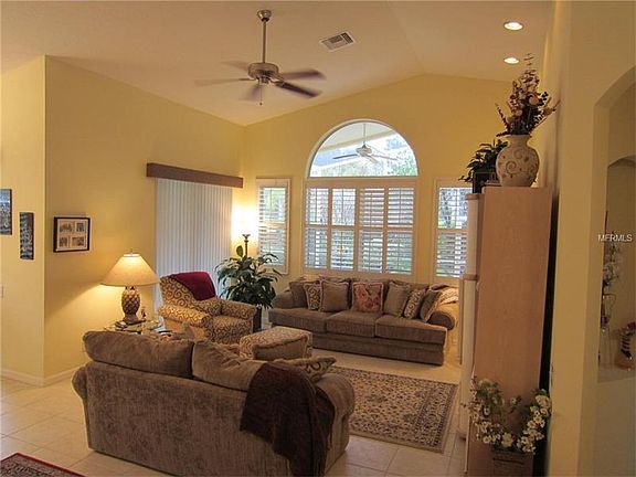 AWC - Taking Backup Offers Active With Contract. Mint condition Trinity home in St. George gated conclave across the street from Champions Club and Fox Hollow Public Country Club. Two generous bedrooms plus a nice office/den. Open Great Room plan with high vaulted ceilings and added recessed lighting. Open kitchen with breakfast nook and separate formal dining area. Fantastic 3" plantation shutters throughout. Fully appointed kitchen with wood cabinets and new stainless steel appliances. 16" ceramic tile throughout home except for carpet in bedrooms and office. GORGEOUS huge brick paver lanai has been expanded with park-like views from lanai. Inside laundry includes washer, dryer and utility sink. Water softener conveys. Pull down ladder in garage. Master bath has dual sinks, upgraded ceramic tile and expanded shower with bench seat. HOA has scheduled this home for new exterior paint to be done March 2016. $168 monthly HOA fee covers exterior paint, grounds maintenance, entry gate and roving nighttime security. There is additionally a quarterly fee of $69 to the Trinity Master Association. This is a fantastic place to live and this fine property is priced to sell quickly.