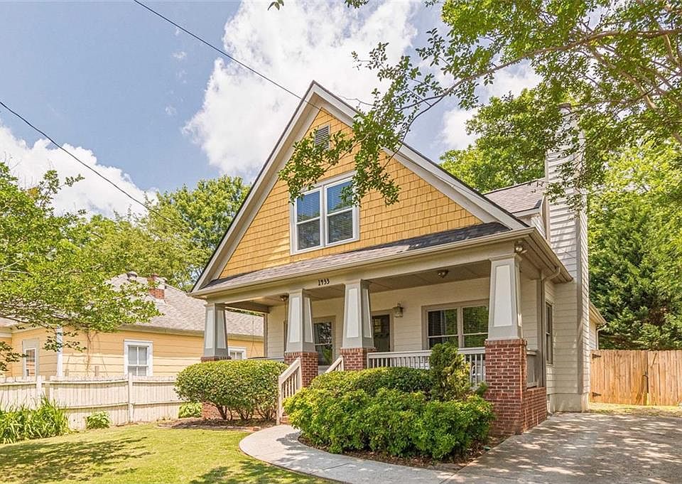 A Timeless Craftsman bungalow ideally located on a private level lot in Jefferson Park - walkable to parks, restaurants, downtown Main St. and more. Featuring newer construction, this four bedroom two and a half bath home enjoys the benefits of newer construction, a large front porch and back deck combined with a modern open floor plan with storage options through-out. An ideal floorplan with real hardwoods on the main level, an owner’s suite also on the main level that is steps into the kitchen and back deck. The kitchen overlooks the open floorplan as well the back deck and the private fenced backyard. Walk out to the deck to a shaded flat back yard -great for enjoying outdoor living, pets, & a separate shed for storage etc… Including stainless appliances and wood cabinets the kitchen also enjoys separate pantry (a big benefit over older bungalows). A second bedroom/office area is located on the first floor connected to the great room providing options for guests and/or a home office. The great room includes a fireplace, natural lighting and opens to/from the large front porch, which is built with brick construction and a large overhang making it a very desirable feature of the home. Two spacious rooms are located upstairs connected via a hallway and nicely appointed hall bath. The Laundry area is located on the main level with additional storage nearby; a new roof replacement was just completed in early June. Well located in one of East Points more desirable neighborhoods convenient access to an active downtown Main Street Area with Oz Pizza, Chairs, a Crossfit gym and other restaurants, parks and a playground. Only a few miles from the Southside belt line area with the Lee + White developing including breweries, rock climbing, etc….Great access for area employers (Delta, Chick-Fil-A, Porche, Woodward Academy), downtown Atlanta, the Airport and easy access to I-85, I-285, Langford Parkway and Marta.