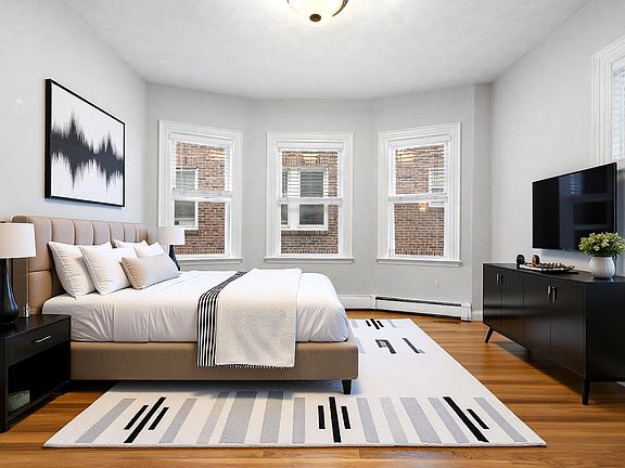 The bedrooms are accommodating, easily fitting a queen-sized bed, dresser, desk, and additional furnishings. In-unit laundry adds a practical touch, and parking is available for rent. This well-appointed apartment provides both comfort and convenience. Don't miss the chance to experience modern living in this thoughtfully designed Cambridge St residence.