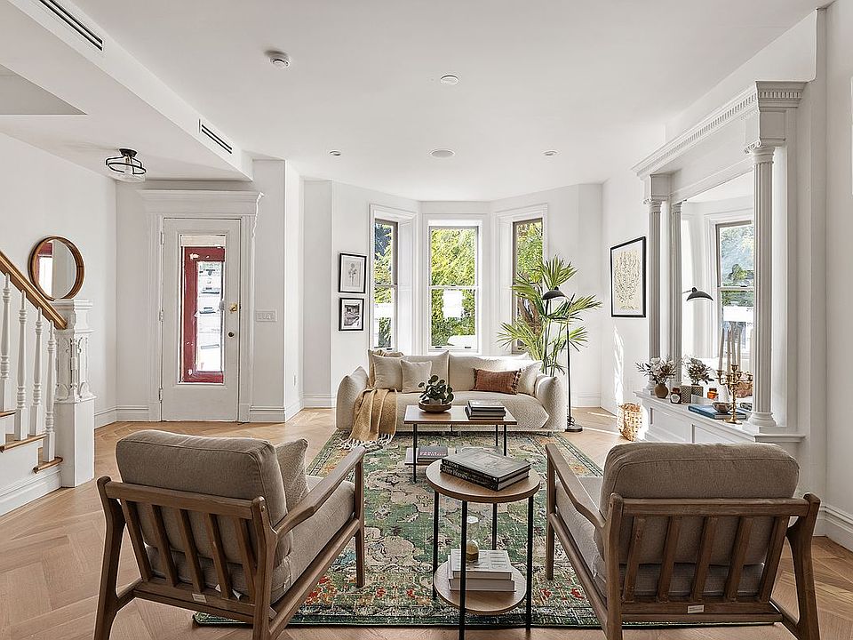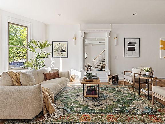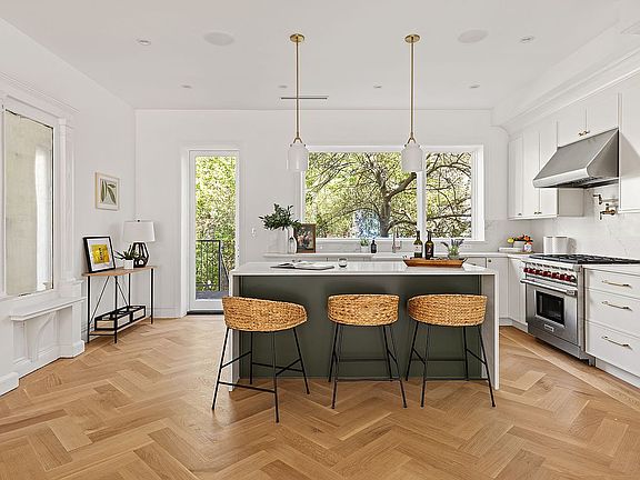 Nestled in the heart of the Crown Heights North Historic District, 1433 Dean Street is a stunning two-family townhouse that masterfully combines the timeless elegance of its 1910 origins with the finest modern luxuries. This exquisitely renovated residence offers 5 bedrooms, 3 full bathrooms, 2 powder rooms, a generous parlor deck, and a spacious backyard, ensuring ample room for comfortable living and entertaining. As you enter the upper duplex, you are welcomed by a gracious foyer through an oversized glass original entry door, setting the tone for the home's blend of historic and contemporary design. The parlor floor, stretching 50 feet in length and 20 feet in width, captivates with its herringbone oak wood floors, original moldings, and an abundance of natural light. At the rear, the gourmet kitchen stands as a culinary masterpiece, featuring an island, custom cabinetry, quartz countertops, and top-of-the-line appliances, including a six-burner Wolf stove, an integrated Fisher & Paykel refrigerator, an integrated Bosch dishwasher, a wine cooler, and a microwave drawer. The farmhouse sink overlooks the tranquil views of the serene backyard. Ascending to the upper level, the South-facing king-sized primary bedroom offers a retreat-like atmosphere with its picturesque views of the tree-lined block and an expansive walk-in closet. The primary bath is luxuriously appointed with marble-tiled floors, aloe green ceramic wall tiles, a double vanity, a glass-enclosed shower, and a skylight. This floor also hosts two additional bedrooms, a secondary bathroom, and a convenient side-by-side washer/dryer closet. The private basement, accessible via an interior staircase, features seven-foot ceilings, tile floors, and a half bathroom, providing a versatile space ideal for a playroom or media den. The garden level boasts a separate, generously sized two-bedroom unit complete with in-unit laundry, perfect for generating rental income or serving as an in-law suite. Positioned near Brower Park, Prospect Park, and a variety of playgrounds, basketball, and tennis courts, this townhouse offers unrivaled access to outdoor recreation. A diverse selection of grocery stores, ranging from mainstream to gourmet, are conveniently located nearby. With the A/C express and local trains just down the street and the 3 and LIRR lines a few blocks away, commuting is a breeze. The proximity to JFK Airport further enhances the convenience of urban living at its finest.
