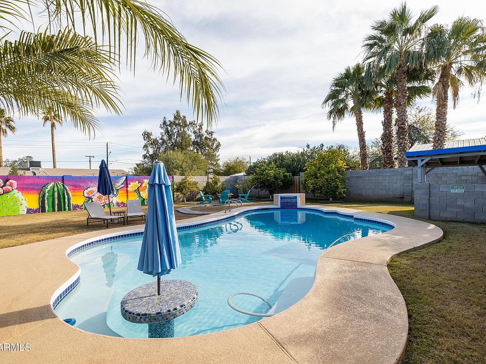 Wow! Rare four bedroom home with pool with water feature on large irrigated lot in Coronado Historic district. Fully owned solar! Upgraded kitchen with granite countertops and kitchen island. Tile flooring throught (no carpet) 60 amp circuit and charger for your electric vehicle. Very energy efficient home with dual pane windows,tankless hot water heater ,upgraded insulation. Backyard oasis with Lemon, orange , grapefruit and tangerine trees.