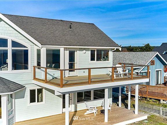 Once in a generation opportunity and location. Low bank direct waterfront with sunny southern exposures to the Gulf & San Juan Islands plus Mt. Baker vistas. The upper floor main living space boasts high ceilings & expansive windows & offers the finest views anywhere in Point Roberts: from the marina entrance to the sunsets to watching sea life & ocean all day long. Carefully planned and built, lightly used and meticulously maintained. The lower level has the added bonus of a self-contained 1 bedroom suite. Concrete retaining wall along both side yards. The home is set up for direct hookup to water, septic and power for an RV. Two large decks for entertaining along with new cedar decking. An easy walk to the marina and Light House Park.
