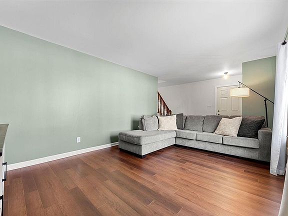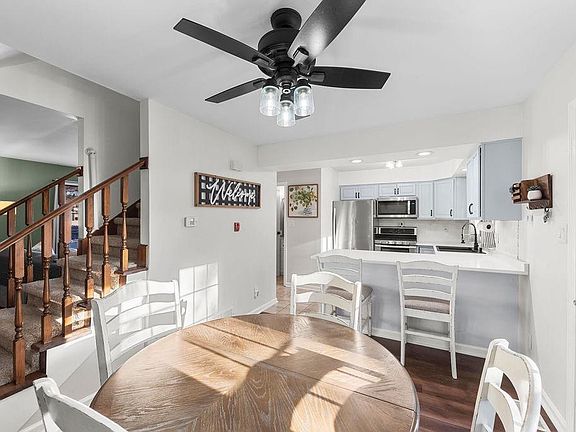 2 STORY, CORNER townhome boasts a PRIME LOCATION near restaurants & shops, BIKE TRAIL practically in backyard. COUNTRY KITCHEN features STAINLESS STEEL APPLIANCES & QUARTZ COUNTER (counter installed in Dec). Summer 2023 saw the addition of WATERPROOF & SCRATCH PROOF LUXURY VINYL. Main floor powder room underwent STYLISH REMODEL in 2023, complemented by an overall HOME REPAINT approx. a year ago. Water heater replaced in 2022, & in 2022/2023 UPDATES to light fixtures, kitchen sink & faucet. GENEROUS SIZED PRIMARY bedroom offering 2 WALK-IN CLOSETS BY DESIGN, 2nd bed is also spacious w/WALK-IN CLOSET. Additionally, property includes 1 car GARAGE (not shared) w/2 extra pkg. spots in rear, as well as FENCED YARD for privacy & WOODEN DECK. Home extends into CARPETED BASEMENT, featuring separate office/den space & separate laundry. With all these features, there's nothing left to do but TURN THE KEY into a MOVE-IN ready home.