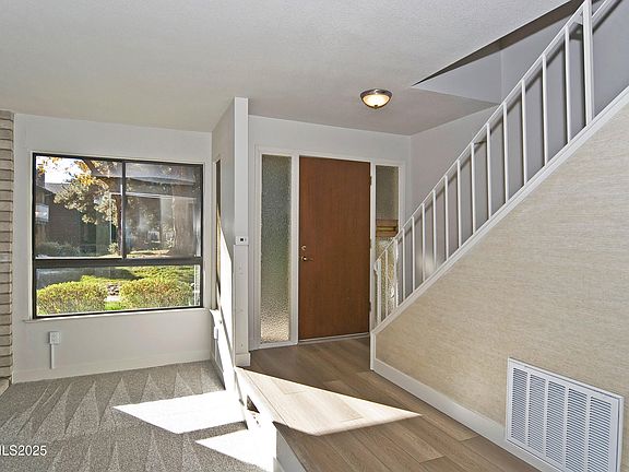 Rare opportunity in the 55+ (Court A) community of the Hunter Lake Townhouses conveniently located in desirable SW Reno. This 1803 SF spacious 3-bedroom 2.5-bath townhouse has a friendly split-level floor plan. The formal dining area with a view to the kitchen is open to the sunken living room with fireplace. The kitchen area features a breakfast bar, breakfast nook, large pantry and a view to the dining room and kitchen., Off of the kitchen is a private patio area that leads to the over-sized detached two-car garage with storage. Bedroom closets feature practical built-ins. Master features a wall of windows and slider to balcony which looks over the serene, professionally maintained park-like setting. This is a gated community close to Truckee River and several parks. New Paint, New Carpet, New LVP flooring downstairs.