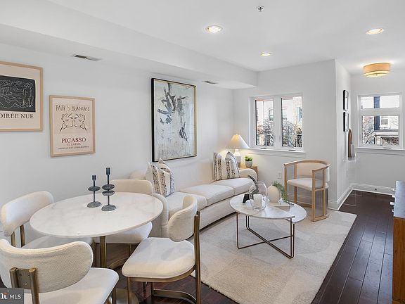 Welcome to your modern home in a boutique building on Capitol Hill! This spacious 2-bedroom, 2-bathroom condo offers a contemporary design and a functional layout. The open floor plan creates a seamless flow for both entertaining and everyday living. The kitchen is outfitted with stainless steel appliances, including a gas range, quartz countertops, and a breakfast bar perfect for casual meals. The primary bedroom features an ensuite bathroom with a soaking tub and access to a private porch with water views. Hardwood floors extend throughout the unit, and there is an in-unit washer and dryer for added convenience. Located in a prime Capitol Hill location, this home is a short stroll to The Roost, a vibrant community food hall, and only two blocks from the Potomac Ave Metro stop. Safeway grocery, Barracks Row, and Eastern Market shops and restaurants are all within walking distance.