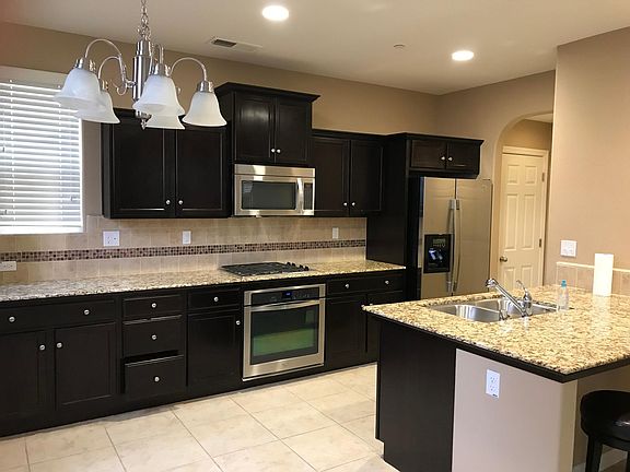 Come take a look at this beautiful home located in The Harlan Ranch! Downstairs, this home features a contemporary style kitchen with gas stove and attached microwave. Half bathroom is also located downstairs to aid in convenience. Upstairs, you will find two, decent sized bedrooms with the master suite in the center. Master suite has walk in closet and step in shower. With its low maintenance front and back yard, this home will not last long! Schedule time to come take a look today!