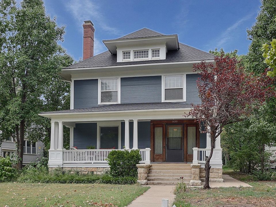 This two-story is a classic Foursquare with Colonial Revival architectural detail, is in the National Register of Historic Places and is a member of the Park Place-Fairview Historic District. Rich hardwood flooring and original woodwork exuding warmth and natural beauty throughout. High ceilings adorned with exquisite moldings are featured throughout the home and contribute to the timeless beauty and charm. Spacious living and dining room areas are separated by expansive pocket doors. The new kitchen remodel features Quartz countertops and brand new stainless appliances providing a modern and clean aesthetic. New luxury vinyl flooring offers a stylish look while being easy to maintain. The 1/2 bath has been completely updated with wainscoting, new fixtures and board and batten wall features in the stairway. All four second-level bedrooms have walk-in closets. The full bath with tub/shower has been freshly painted and has had new fixtures added. New light fixtures and new blinds have been added throughout the home. The unfinished third level/attic has significant potential and would add functional living space increasing the home's overall value and appeal. Exterior updates you include a new roof (2023) and new paint (2024). This home also features an oversized two-car garage and the home is on quarter-acre lot. Enjoy the convenience of being in close proximity to Old Town, Riverfront Stadium, parks and bike trails, all from this centrally located property. Schedule a showing to see this beautiful home today!