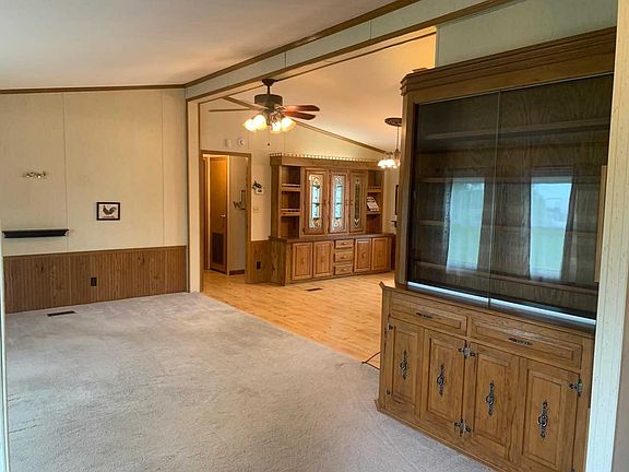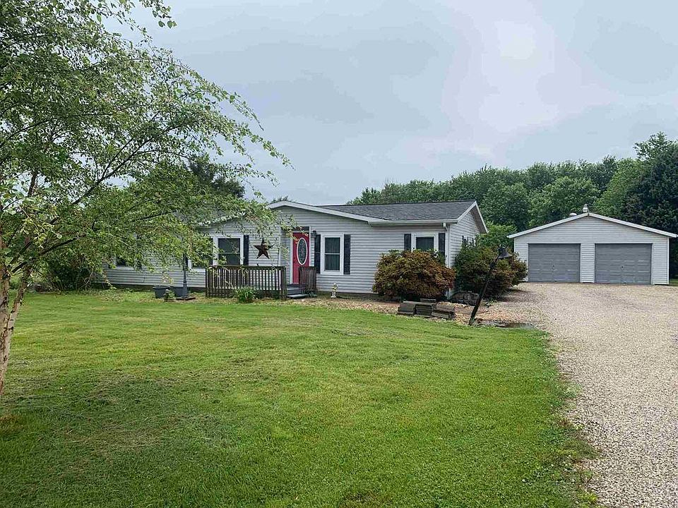 Looking for country living ...then don't miss this split 3 bedroom, 2 bath home on 2.5 acres. This home was manufactured in 1989 and features a very open floor plan with vaulted ceilings and custom cabinets. As you walk into the entry way, you will find built in cabinets, spacious living room with custom made cabinetry and vaulted ceiling. The dining room features a built in hutch and eat in kitchen boasts plenty of cabinets and counter space, and is fully furnished including the Refrigerator, Range/Oven, Microwave and Dishwasher. The laundry includes the washer and dryer and cabinet space. The owner's suite is 16 x 13 with large closet, garden tub, separate shower and double vanity. On the other side of your new home there are 2 more bedrooms and a full bath. If you love nature, then take a walk outside onto the partially covered deck, overlooking a wooded area where you can enjoy the wildlife. Looking for storage, then you don't want to miss this one....there is a detached 2.5 car garage, another workshop area and 2 more sheds, nestled on 2.5 acres with some wooded area. Make your appointment today to preview your new country home. Included in sale: Refrigerator, Range/Oven, Microwave, Dishwasher, Blinds & Window Treatments, Dining Room Hutch, Custom cabinet in Living Room, 2 sheds, workshop & 2.5 car detached garage. Per Seller - Roof is 14 years old