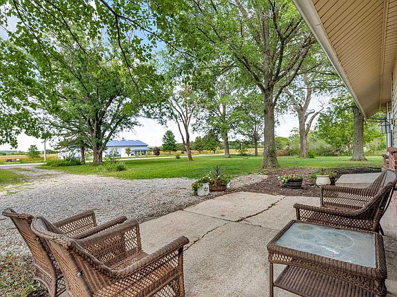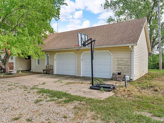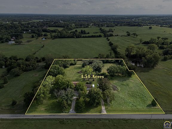 Looking for peaceful country living with modern updates? This beautiful 2,663 sq ft home sits on a stunning 4.54-acre lot along a paved road — perfect for those wanting space, privacy, and a place to truly call home. As you pull into the large circle drive, you'll notice the oversized two-car garage and fresh curb appeal. Step inside through the brand-new front door and you’re greeted by an open entryway with easy access to a convenient main-floor ¾ bath. The front living room features a charming bay window and a cozy wood-burning fireplace, making it the perfect spot to relax. Just off the living room, the formal dining room has been upgraded with a stylish shiplap accent wall, giving it a warm, modern feel. The kitchen offers plenty of cabinet and counter space, plus a breakfast bar that opens into a spacious eat-in area — great for casual family meals. A few steps down, you'll find a large rec room with brand-new carpet. It’s ideal for game nights, movie marathons, or could even be converted into a main-level bedroom with the addition of a finished closet. Upstairs, you'll find four generously sized bedrooms and a full bath, all featuring new luxury vinyl plank flooring, fresh paint, updated trim, and modern light fixtures. The primary suite stands out with its oversized layout and huge walk-in closet. The basement houses a newer high efficiency HVAC system and water heater, along with laundry, built-in shelving, and a walk-out to the backyard. Step out onto the back patio and enjoy sweeping views of your nearly 5-acre lot — the perfect place to unwind and soak in the Kansas landscape. If you're dreaming of a move-in ready home with land and room to breathe — just outside the hustle and bustle of the city — this one checks all the boxes.