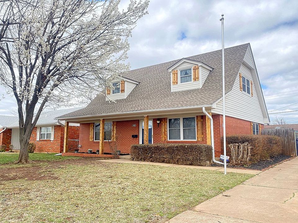 This beautifully renovated home is a must see! Too many updates to mention! Exterior updates include custom shutters and cedar columns. The living room and kitchen are open concept including a huge custom island with granite counter and farmhouse sink. The kitchen has new stainless steel appliances, backsplash, faucet and lighting. The new butcher block counters look beautiful with the freshly painted cabinets. The living room boasts custom cedar posts and beautiful staircase with new treads. Both bathrooms have new tub tile, flooring, mirrors, lighting and faucets. The downstairs bathroom has a gorgeous double sink vanity along with custom shelving. This adorable home has fresh paint throughout the interior, ceiling fans and blinds. The downstairs has new vinyl plank flooring along with carpet in the bedrooms. The upstairs has the original wood flooring. The garage is oversized with cabinets and shelving. This move-in ready home is waiting for a new owner. Call Connie with C & J Properties, LLC at (405)245-0379 to schedule a viewing. Realtors are welcome.