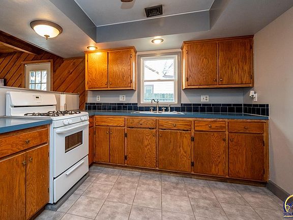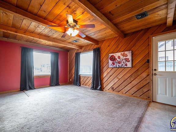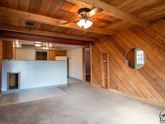 LPS Modern rustic cabin style ranch perfectly located for quick access to highways and downtown Topeka. Cozy living room opens to a big country kitchen with recessed tray ceiling. The laundry is conveniently stationed in the large primary bedroom which features an electric fireplace and good closet space. If you don't need 3 bedrooms, the large 3rd room would work well as an additional TV/rec room. Updated bathroom with beadboard wainscoting and on Onyx shower. Privacy fenced yard, large deck, and a two car garage. Kitchen appliances can stay! New sewer line installed in 2021.