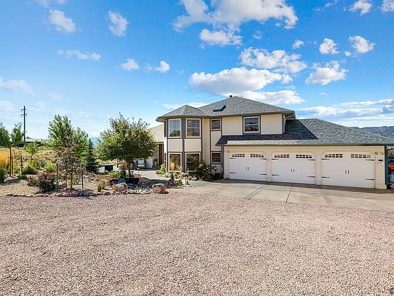 Welcome to a luxurious haven set on a sprawling 4.85-acre estate. As you arrive, you're greeted by meticulously landscaped gardens that showcase an array of native flora and decorative shrubs. These lush grounds are made all the more stunning thanks to an automatic irrigation system that keeps everything in pristine condition. The interior of the home echoes this sense of lavish tranquility. At the heart of the residence is a generously spacious kitchen outfitted with top-of-the-line appliances, providing a dream space for both everyday meals and extravagant entertaining. The living area is equally inviting, with a cozy fireplace serving as a perfect focal point. Large windows not only flood the space with natural light but also provide breathtaking views of the surrounding mountains, which can be enjoyed from the living area and the master suite. You'll also find a spa-inspired bathroom that promises relaxation and rejuvenation. The exterior of the home is equally compelling, featuring multiple deck areas, perfect for outdoor dining or simple relaxation. The three car garage and additional spaces offers plenty of parking for cars, boats, RVs, or any other recreational vehicle you can think of. Not one but two pergolas complete the outdoor amenities, inviting you to enjoy the sweeping vistas as you entertain family and friends. Situated in a highly desirable area of Canon City, the property offers the best of both worlds!