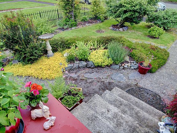 Welcome to this irresistibly charming 1940s home in Mount Vernon’s beloved Hill neighborhood. This darling home features cove ceilings, glowing red oak floors, cozy cork flooring in the kitchen and bath, plantation shutters, and two warm natural gas fireplaces. The bright, leveled basement is freshly painted with a finished touch—perfect for hobbies or storage. Step outside into a garden paradise, lovingly cultivated with vibrant flora over the past decade. Just a half block from Hillcrest Park and a short stroll to downtown, schools, transit, and the hospital. A spacious detached garage with alley access and quick, traffic-free I-5 entry complete the picture.