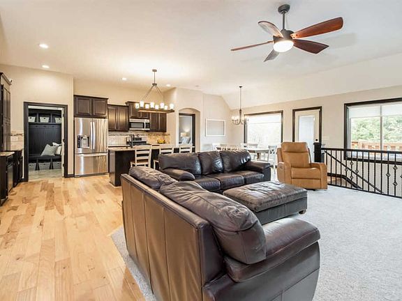 Wow! Welcome to this beautifully designed custom home in the Derby school district. This home includes 6 bedrooms, 1 office, 3.5 bathrooms and over 3,790+ sq ft of finished living space. The main level features zero entry from the front door and garage, a beautiful floor to ceiling stone fireplace, a large kitchen and dining area, a hidden walk-in pantry, a laundry/mud room that leads into the master suite, two additional bedrooms and on bathroom. From the kitchen there are stairs that lead up to the fun hideaway bedroom that includes a walk-in closet and half bathroom. Making your way downstairs youâll instantly see some of the beautiful custom built-ins, as well as a walk-up wet bar, a large 45 x 35 family room, two additional bedrooms, one bathroom and two storage rooms with built-in shelving. Walking out to the back deck youâll enjoy the ceiling fans in the warmer months, the fun tree lined view, the fire pit patio area and the fun kids playhouse that will remain with the property. There is so much more to see in this home, you wonât want to miss this one. Accepting all offers until 8pm 4/17