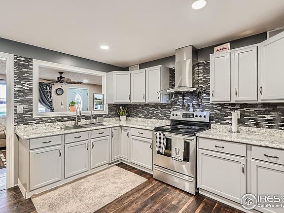 Updated ranch located in Central Longmont across from a park. Amazing open kitchen is a cook's dream w/plenty of counter space & cabinets, SS appliances, stylish backsplash tile & large sink. Spacious dining room connects to the kitchen & covered deck perfect for entertaining. Wood floors w/an inviting living room w/views of the park. Large private backyard is landscaped & features covered deck, fire pit, fruit trees, storage building. Extra parking pad for 2nd car or RV. Has 5 bedrooms + office/workshop room. Huge recreation/TV room in the basement. Close to schools, old town, shopping, restaurants, parks & hospital.