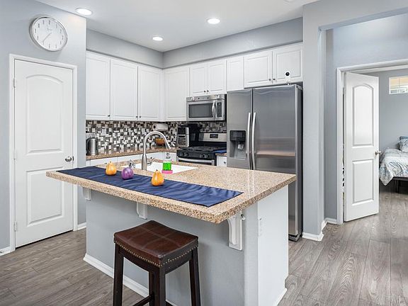 Gorgeous condo shows true pride of owership. Desirable corner unit features 1 car garage with direct entry plus 1 uncovered space, new carpeted stairs, beautiful flooring in all living areas, spacious kitchen with granite island and counters, custom backsplash, stainless steel appliances, lots of cabinets plus pantry, central air. Bedrooms are at separate ends with walk-in-closets. Balcony off the kitchen area. Laundry closet is conveniently upstairs. All information is deemed correct, buyer and buyer's agent to verify all before close of escrow.