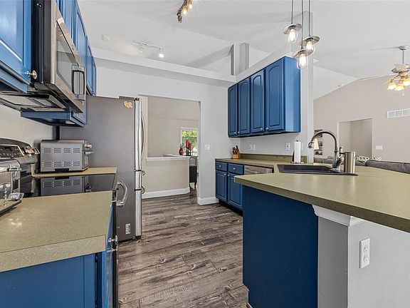 This spacious ranch-style home on a cul-de-sac offers over 2,700 square feet of living space. The open floor plan features new luxury vinyl flooring throughout the main level. The vaulted great room with a gas fireplace opens to the kitchen and breakfast area, which includes new French doors leading to the deck. The kitchen boasts 42" cabinets, stainless steel appliances, and a large breakfast bar. The vaulted primary suite boasts a freshly renovated bathroom with a jacuzzi tub and separate shower, with walk-in closet. The finished lower level features a theatre room with a star-lit ceiling, a rec room, and rough-in plumbing. Another set of new French doors open to the patio with a fire pit. Additional features include a 3-car garage with 220 amp service, a new irrigation system, and a newer HVAC system with a humidifier installed in December 2020. All this within walking distance to Homefield amenities, including two pools, walking trails, basketball courts, frisbee golf, and more! Additional Rooms: Mud Room