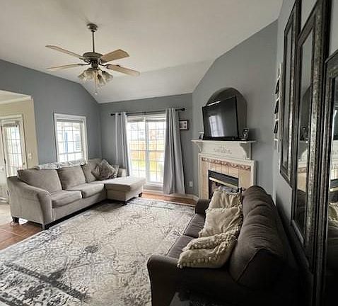 Beautiful ranch style home. Large great room with tile flooring, corner fireplace and large window to let light in. The kitchen has bar cut out that opens to the great room. Tile flooring, Granite counter tops with tile backsplash. Appliances include built-in microwave, stainless Steele range/ove, and dishwasher. The kitchen opens to the dining room with bay window and chair molding. The primary bedroom is spacious and features tray ceiling with ceiling fan, tile flooring and walk-in closet. The primary bath has tile flooring, large garden tub and separate vanity sinks. The secondary bedrooms are spacious. Enjoy the outside porch.