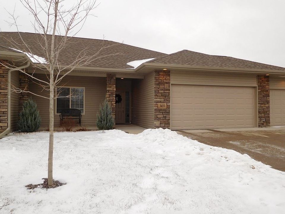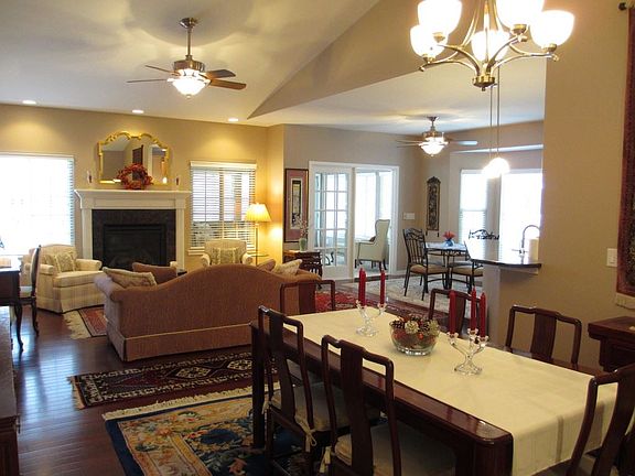 Impeccable, sun-drenched 3 bed, 3 bath ranch walkout condo that's move-in ready. Incredible amenities such as vaulted ceilings, stunning gas FP, breakfast bar, glazed maple kitchen cabinetry & tranquil pond views from the deck/patio/4-seasons porch. Spacious master with walk-in closet and luxe master bath; granite counter tops in all baths. Zero entry from 3-car garage through mud room/laundry room combo into kitchen. Huge family room and plenty of storage space in walkout LL. Maytag W/D remain.