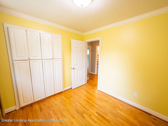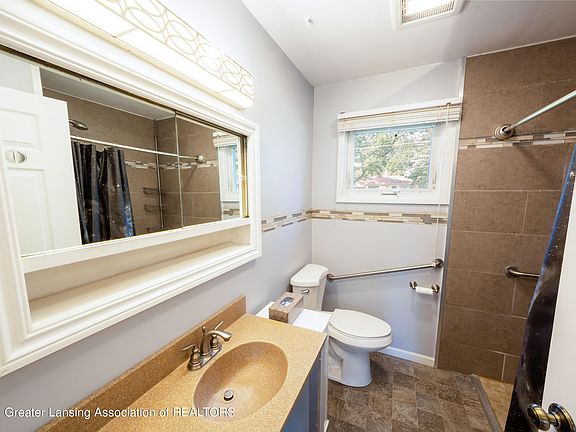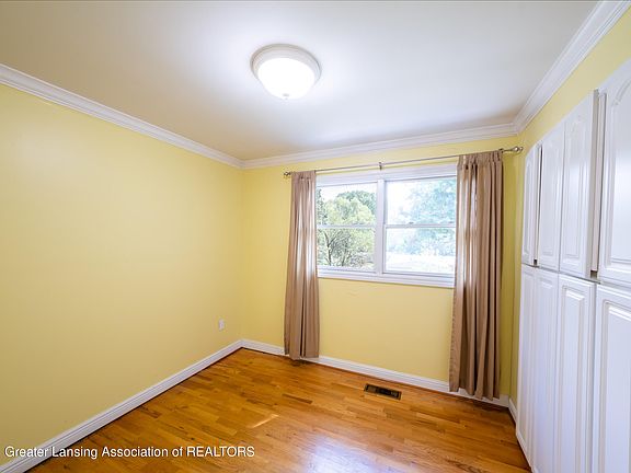 Welcome to 1433 Wilshire located on a private lot within walking distance to Haslett Elementary, Middle, and High Schools. This tidy all-brick ranch home is move-in ready! Enter to a foyer area overlooking the combination living room/dining room with large windows and beautiful hardwood floors. The kitchen has been updated with newer white cabinetry, laminate countertops, a kitchen desk, and plenty of storage and counter space. There are also three bedrooms and two full baths on the main level, all bedrooms with hardwood floors. The full, walk-out basement has tons of potential. There is a brick fireplace, lots of natural light, and even the opportunity for a fourth bedroom in addition to lots of storage space. The back yard features a private setting, newer patio and steps, and a shed. There is also additional storage in the one car detached garage. The breezeway could be a bonus as well, but does need a beam replaced. Wonderful opportunity to complete a few projects for instant equity!