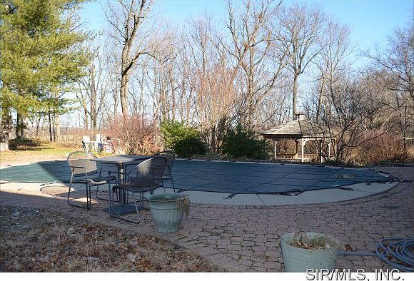 WE KNOW...Breathtaking Right? And it sits on over 3 ACRES!! Features include large foyer entry, formal dining and living rooms, fireplace, an updated kitchen, hardwood flooring, 4 Bedrooms, 3 Baths, a HOME OFFICE!..FINISHED Walk-Out Basement with a bar! Not only will the setting wow you, but the amenities do as well. An inground HEATED pool with extensive landscaping and a gazebo to enjoy the wooded view. The roof is new in the last 2 years. Minutes to Breese Hospital and access to old Rt 50. Peace and tranquility with the setting you've been looking for.
